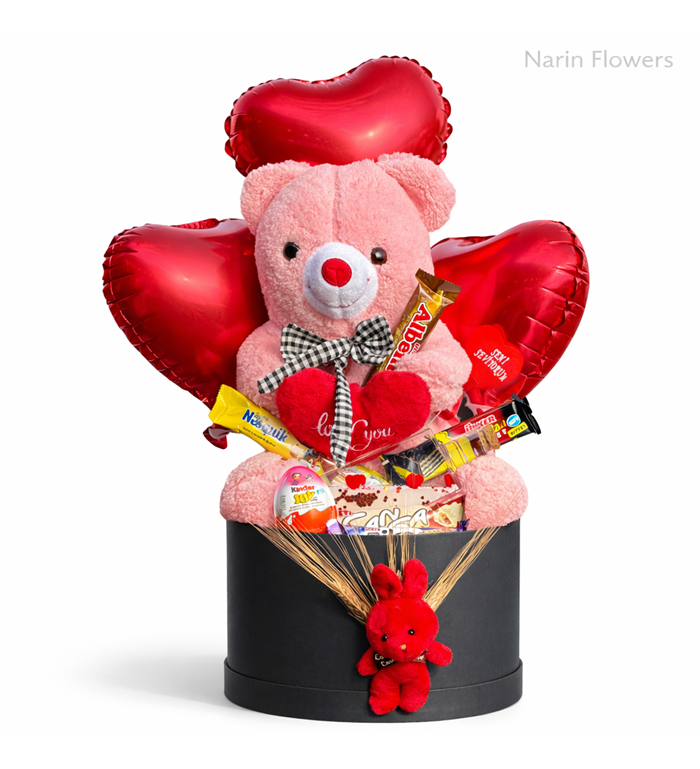 Kalpli balonlar, yumuşacık peluş ayıcık ve birbirinden lezzetli çikolatalar ile hazırlanan bu özel hediye kutusu, romantik anların en tatlı tamamlayıcısı olacak.